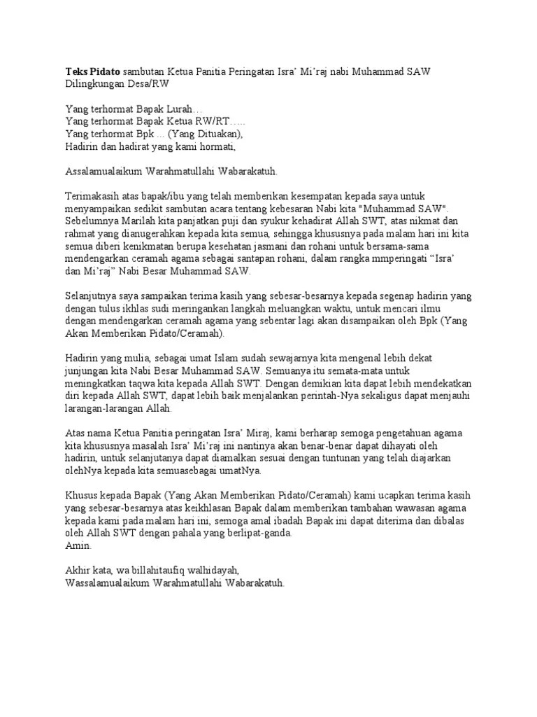 Atas nama panitia penyelenggara peringatan isra' mi'raj nabi muhammad saw. Begini contoh teks sambutan ketua panitia isra miraj yang sederhana. Berupa file pdf sehingga bisa didownload. Yang terhormat bapak rw/rt yang mulia bpk kyai h. Dan berikut ini kami akan memberikan beberapa contoh .